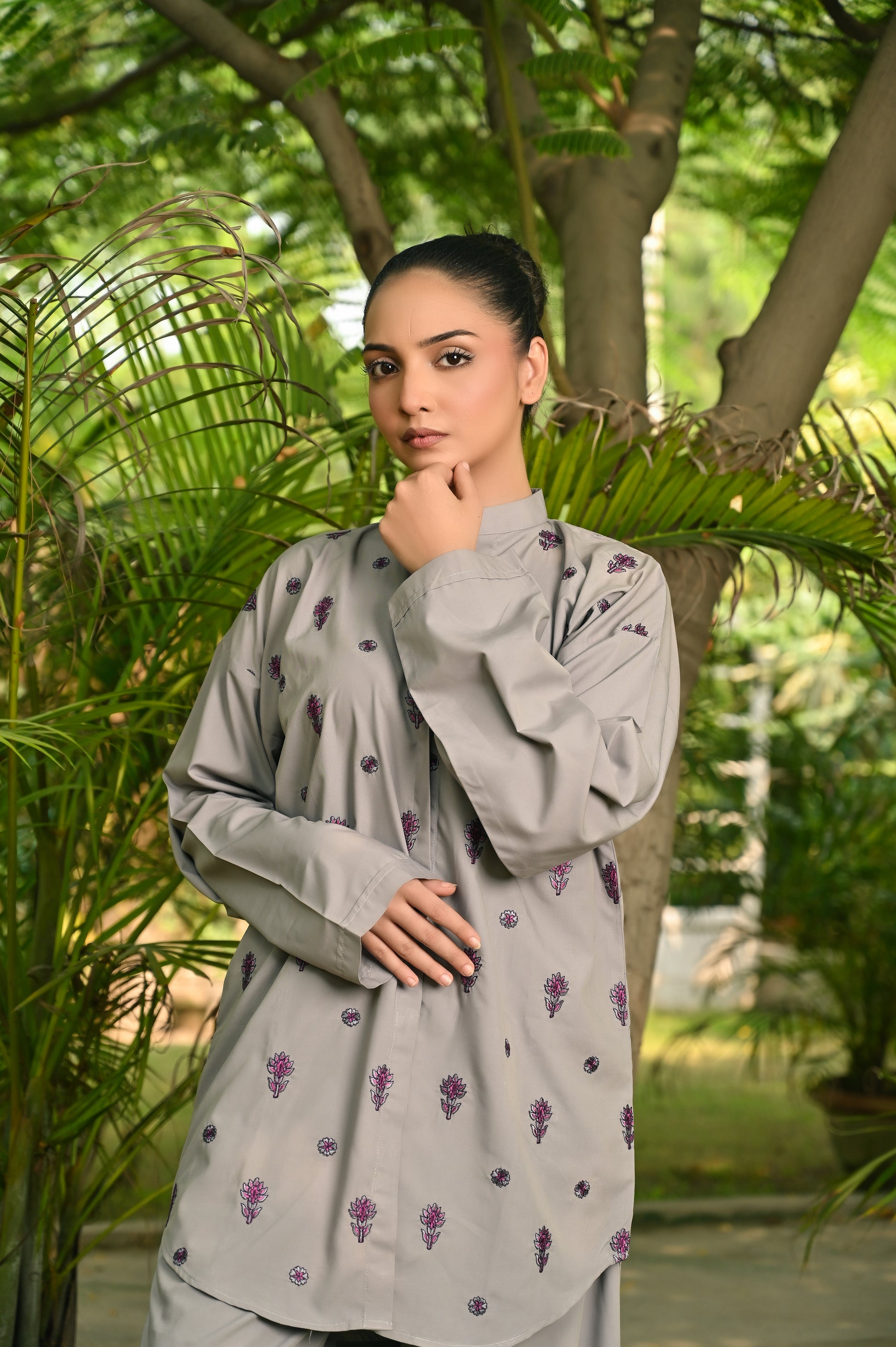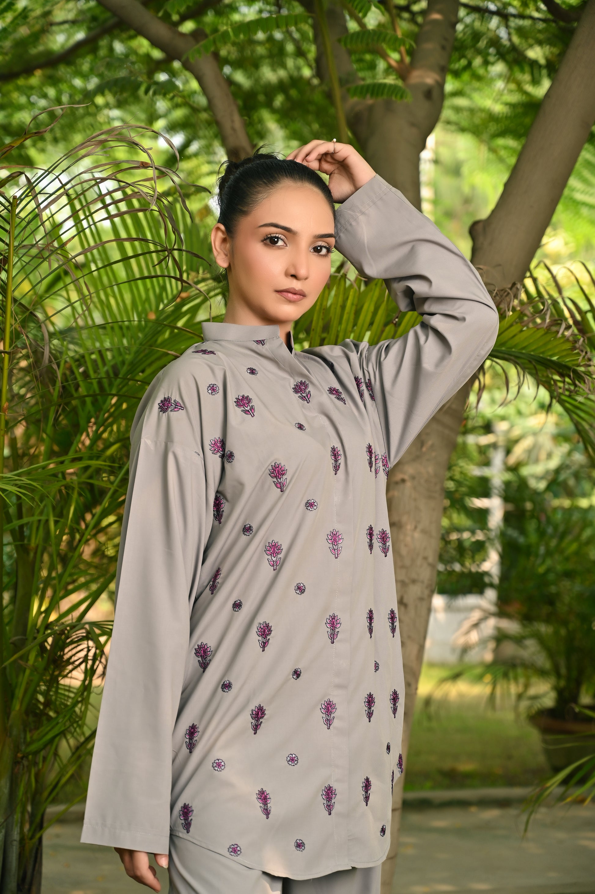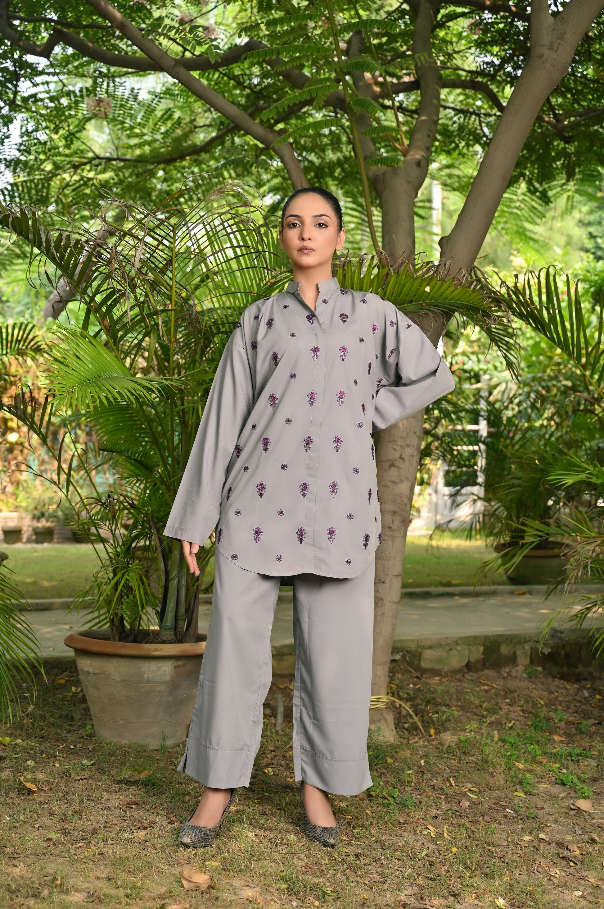 2-Piece Gray Embroidered Co-Ord Set – Perfect Stitches By Maryam