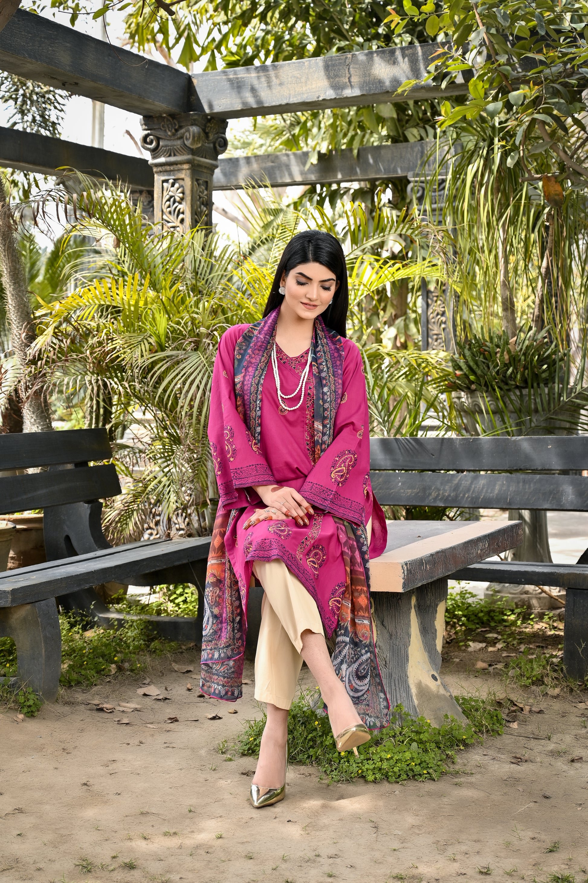 righten up your wardrobe with this 2-piece Shocking Pink Block Printed Lawn Suit by Perfect Stitches By Maryam. Showcasing vibrant block prints on soft lawn fabric, this stitched outfit combines style and comfort effortlessly.