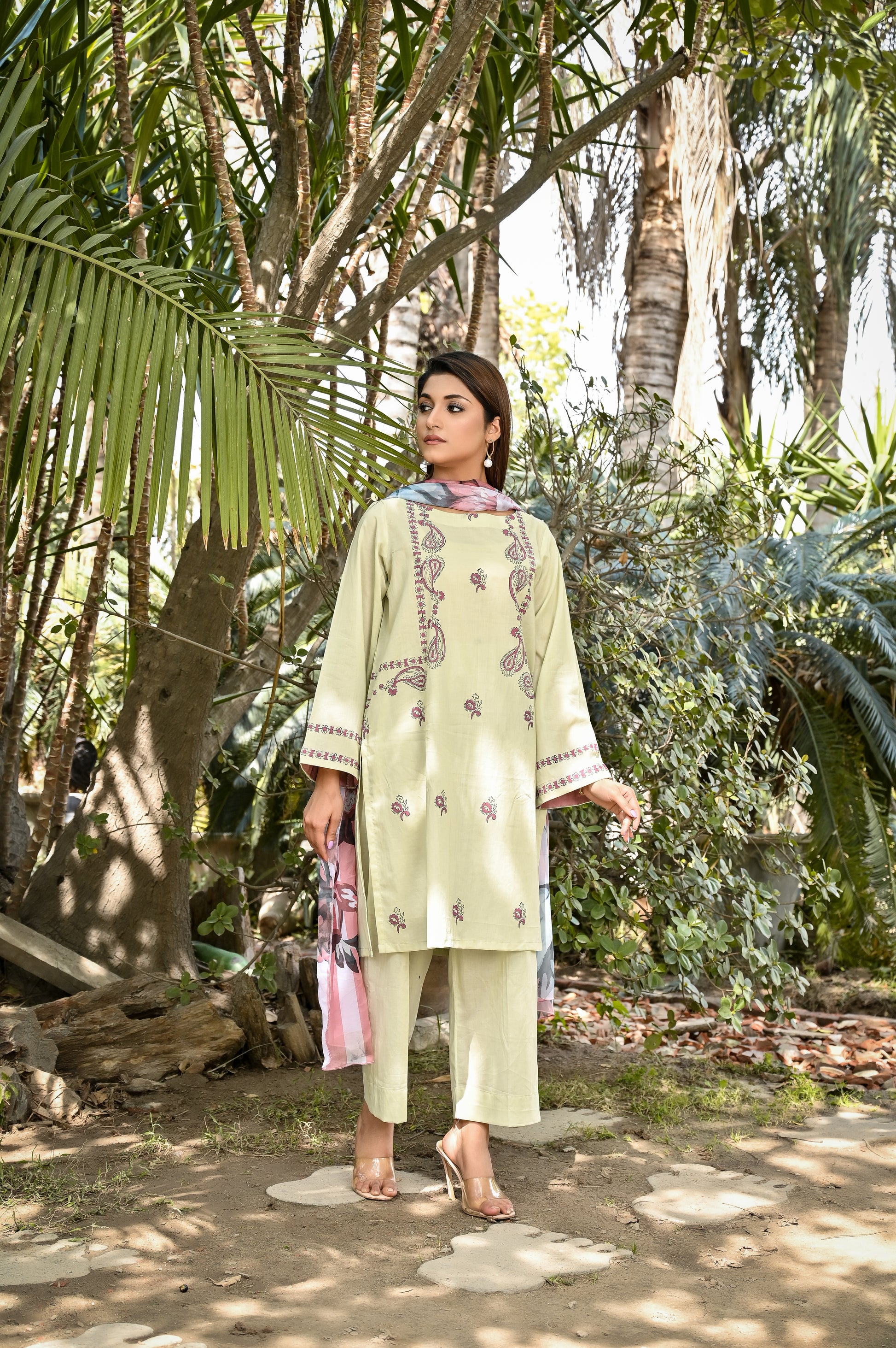 3Pcs Mint Green Block Printed - Perfect Stitches By Maryam