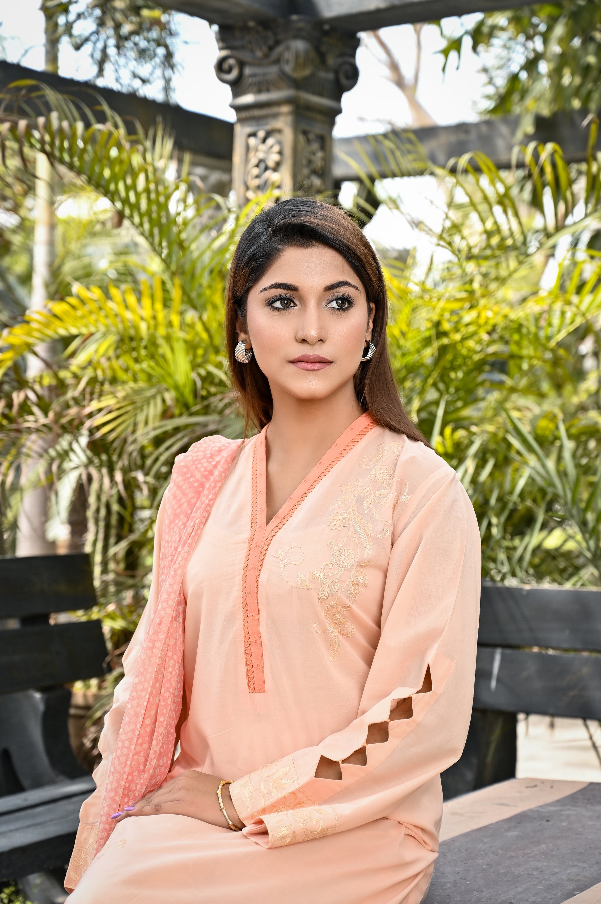 3Pcs Peach Embroidred - Perfect Stitches By Maryam
