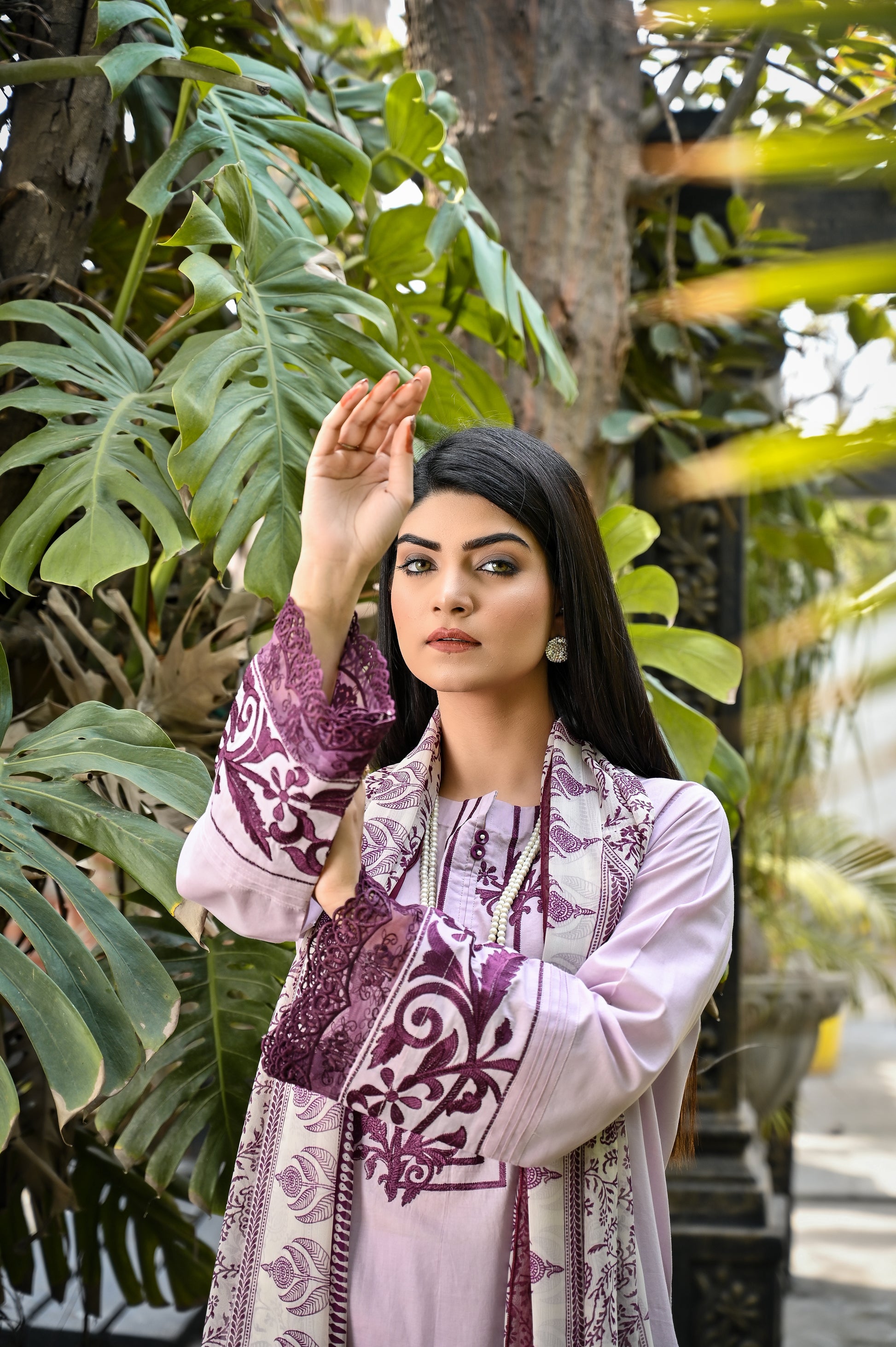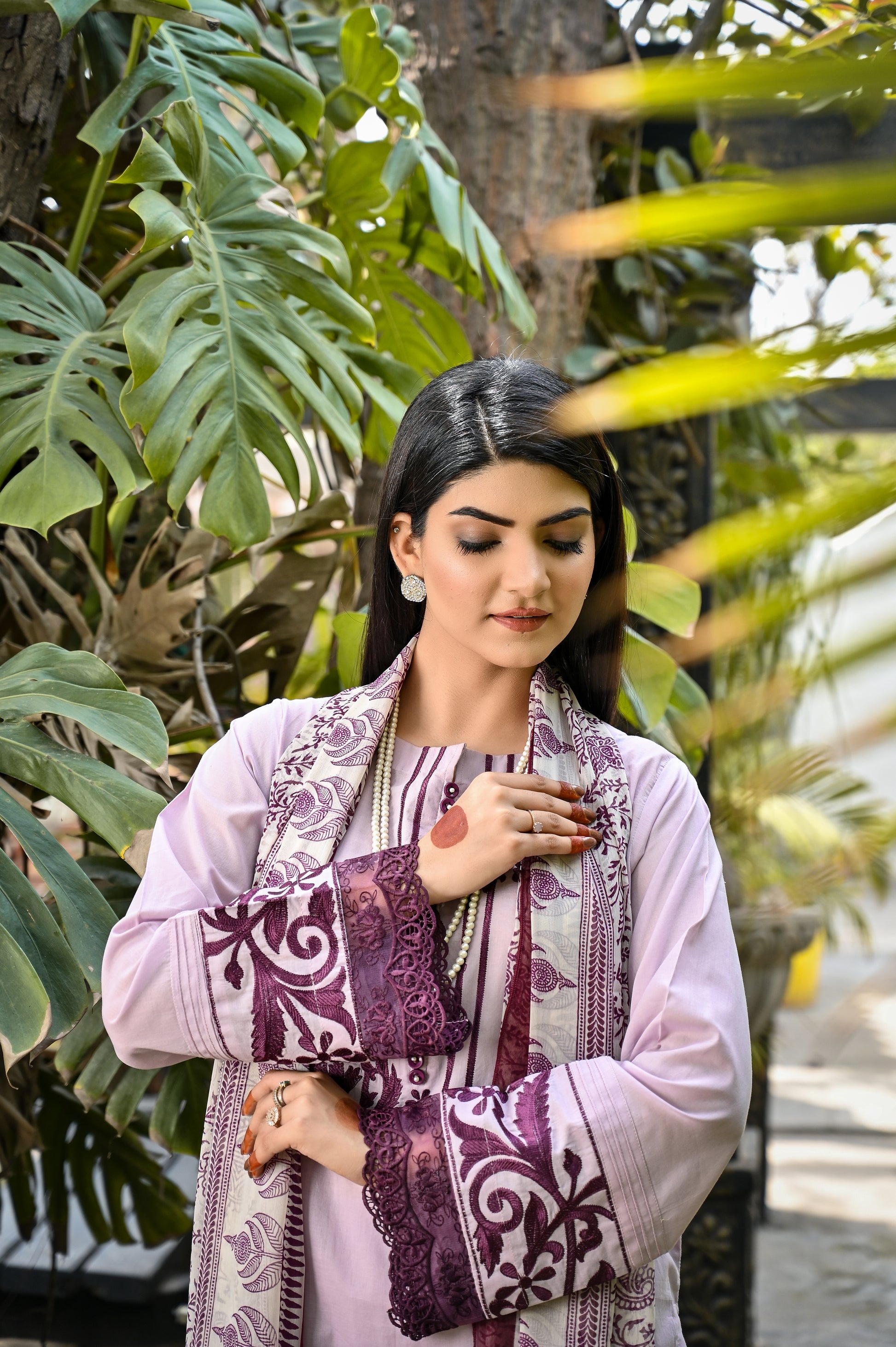 3Pcs Purple Embroidred - Perfect Stitches By Maryam