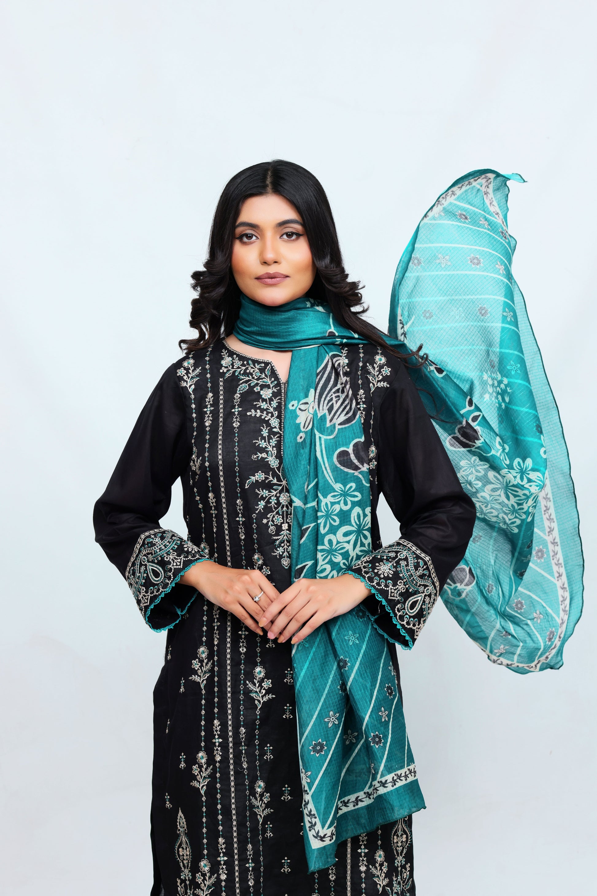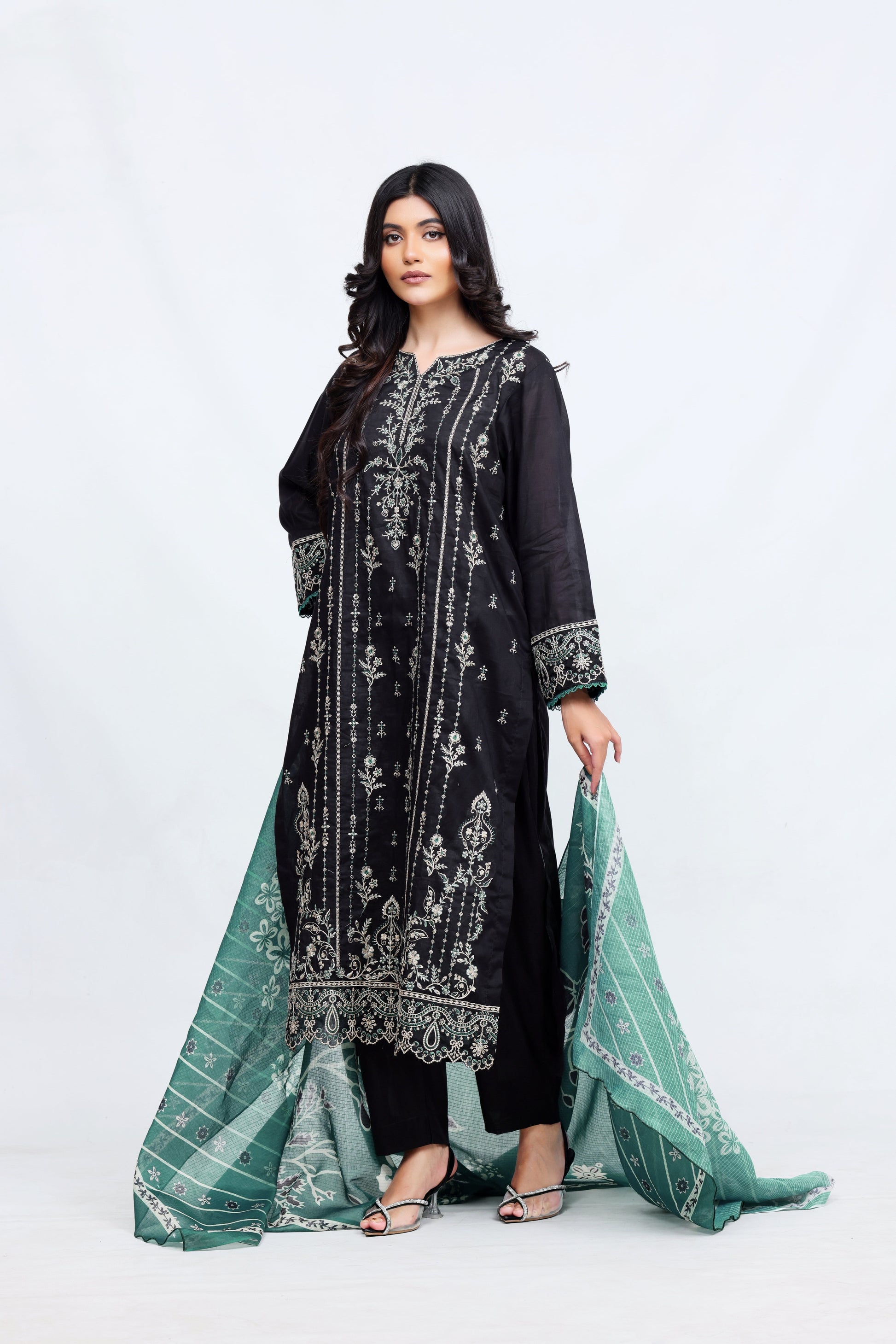 Step into elegance with the Black & Zink Embroidered Lawn Suit by Perfect Stitches by Maryam. Crafted from premium lawn fabric, this stitched 3-piece suit features intricate embroidery on the shirt and dupatta, offering a perfect blend of tradition and modern style.