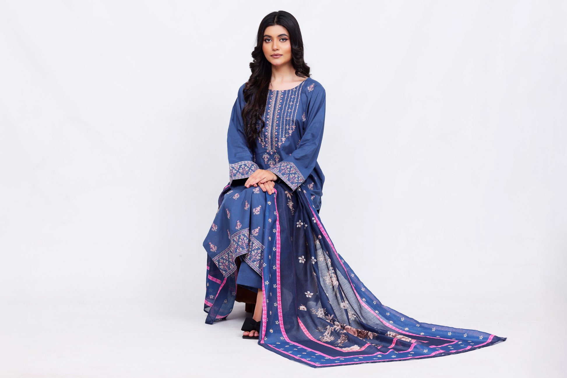 Make a statement with this elegant Blue Embroidered Lawn Suit from Perfect Stitches by Maryam. Designed for comfort and style, this stitched 3-piece outfit features delicate embroidery and a soft, flowing printed viscose dupatta — perfect for summer wear.