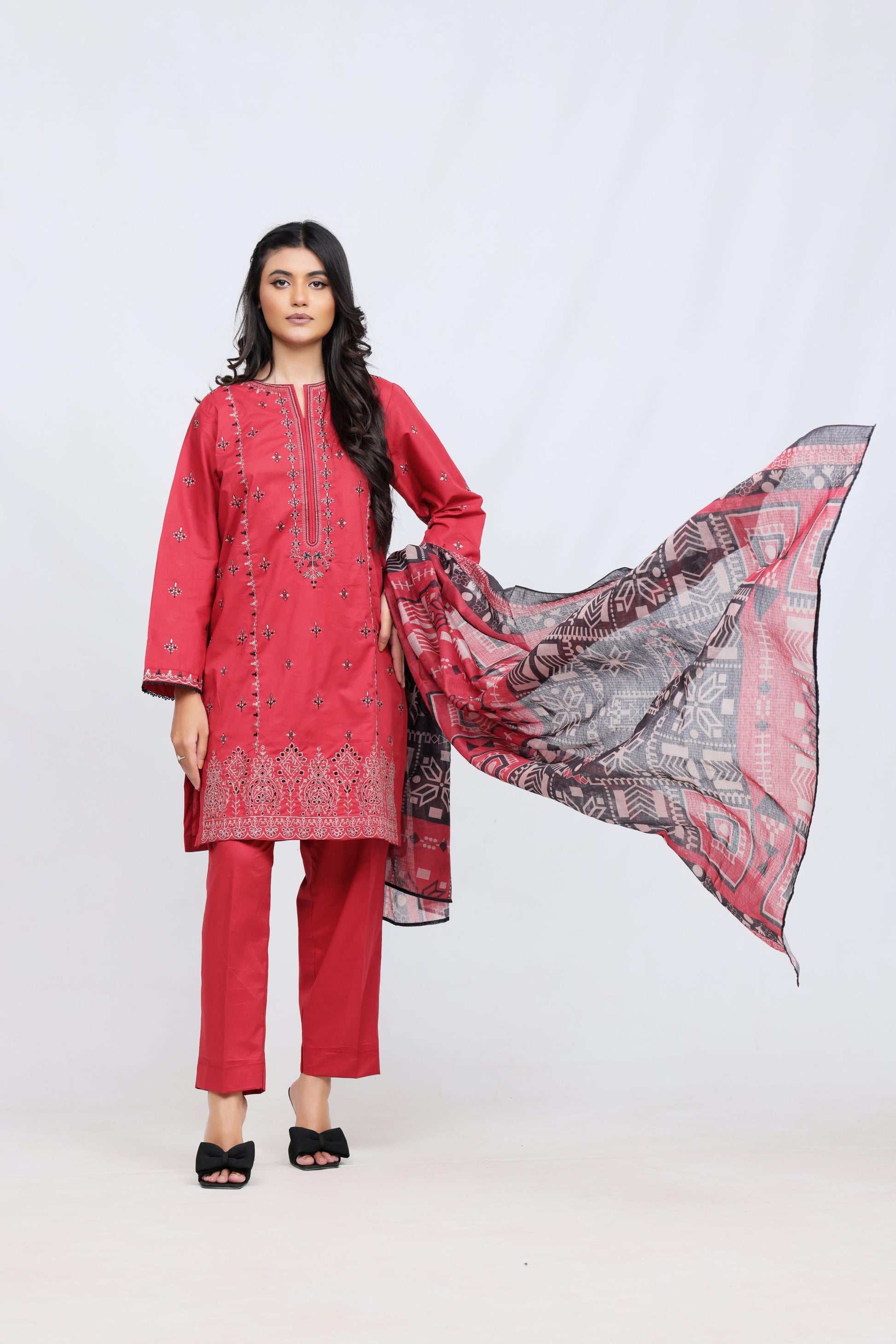 Red Lawn Embroidred - Perfect Stitches by Maryam
